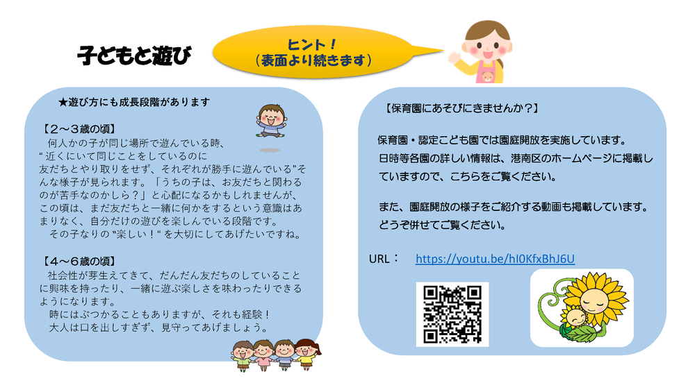 ・区のホームページには、園庭開放の様子をご紹介する動画も掲載しています。どうぞ併せてご覧ください。
