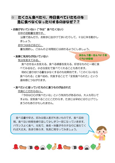 おやつを食べすぎていたり、体を動かして遊ぶ機会が少ないと、時間になってもお腹が空きません。
