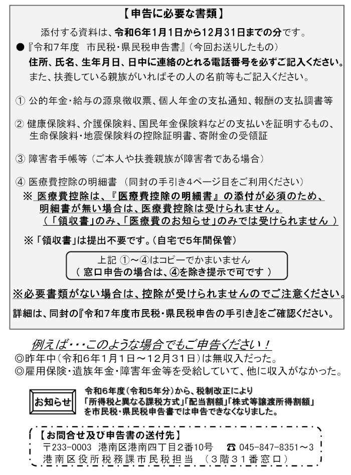 令和7年度市民税・県民税申告書は、2月7日に発送する予定です。