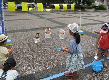 83太郎の的に向かって水鉄砲やひしゃくで狙いました!!