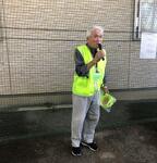 栗原区長も仮設階段で声がけのお出迎え!