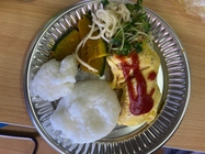 ごはん、カボチャの煮物、オムレツ、切り干し大根サラダ