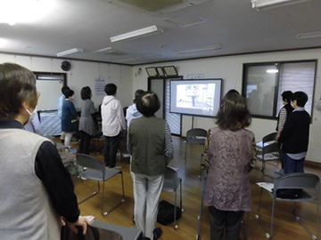 区役所の栄養士、歯科衛生士を講師に、おいしく食べながらフレイルを予防する工夫や、お口の健康を保つための体操など、皆でフレイル予防を学びました。