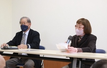 挨拶をする上田委員長(右)と田中委員長代行(左)