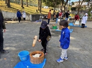 子ども達もチャレンジ!大きくなったら本物の餅つきに参加してね