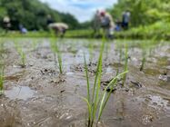 泥まみれになりながら、初めての田植え作業に苦戦しながらも楽しく行いました。農業体験に興味のある小学生、募集中です!