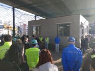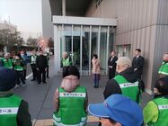 港南警察署長と港南区福祉保健センター長が見守る中、笹下連合で初の合同防犯パトロールを実施しました。