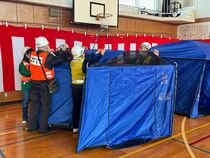 体育館では、新たに購入したテントの設営訓練やデジタル簡易トランシーバー使用訓練を実施。また、校庭では「まかないくん」を使用した炊き出し訓練や、発電機を使用した夜間照明確保訓練を行いました。 いざという時に備え、どの訓練にも、皆さん真剣に取り組まれていました。