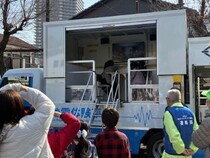 「3.11を忘れない」という思いから毎年この時期に実施しているとのこと。今回は野庭消防出張所と連携し、起震車による震度4と震度7の体験、車いすの使用法の確認、救急救命講習を行いました。
