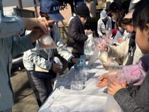 子どもたちも炊飯袋にお米と水を入れることを体験