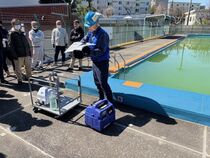 グラウンドのマンホール設置場所の確認から始まり、トイレの組立とポンプの動作確認まで、発災時を想定して注意点を確認しました。新年度からの防災委員も参加していて、参加した皆さんの真剣さが伝わってきました。