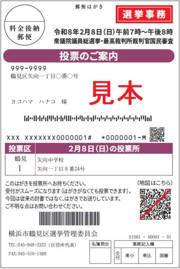 従来の世帯ごとの封書から、有権者1人につき1枚のハガキでのお届けとなります。投票に行く際は、ご自身宛てのご案内を持参してください。