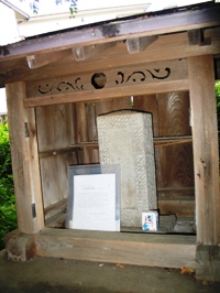 また、この丘のふもとには、為朝の妻の墓といわれている笠石がまつられています。