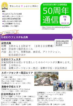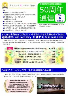 中学生・高校生も活躍 区制50周年記念式典開催/区制50周年記念誌完成しました/各会場大にぎわいの ひまわりフェスタ/台風を乗り越えて 秋にもひまわり咲きました!/区民企画イベント続々開催/特別共演が実現!ひまわりミュージックフェスタ/区制50周年フィナーレは 港南区元気な地域づくりフォーラム/オリジナルフレーム切手販売