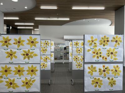 親子連れをはじめ、たくさんの区民の方々に参加していただき、70個以上のひまわりが完成いたしました!!