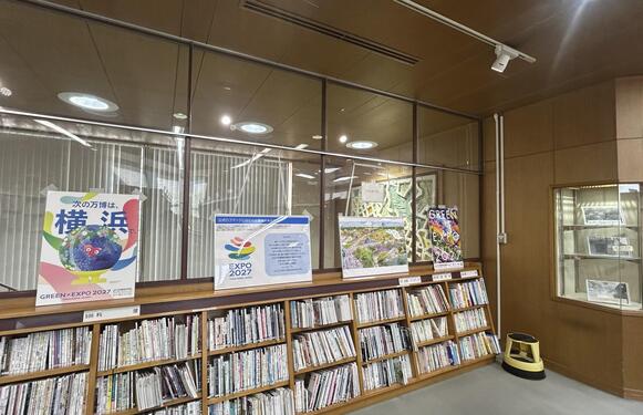 港南図書館にて、GREEN×EXPO 2027に関するパネル展示を11月に行いました。GREEN×EXPO 2027の公式ロゴの意味や会場イメージの紹介に加え、「花・緑」に関連する図書コーナーも設置することで、来館者の皆さまにGREEN×EXPO 2027を知っていただく機会を創出しました。