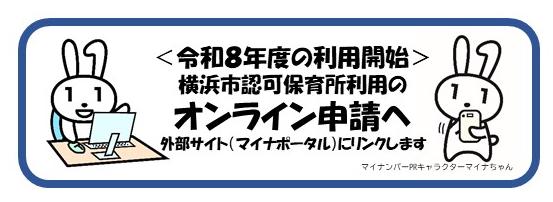 - 利用開始日の前日までに転入される方で「令和8年度横浜市保育所等利用案内」のP14(2)のアに該当する方もオンラインで申請できます。