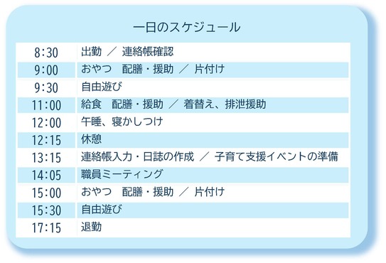 多くのこどもたち一人ひとりと丁寧に向き合う大変さはありますが、その分、やりがいも大きいです。職員も多く、さまざまな先生方から学びながら、自分自身も成長できる環境だと感じています。
