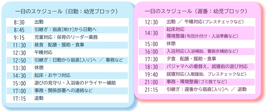 働きながら成長し続けることができ、スキルアップできる環境があります! 研修制度が充実しており、また、異動制度により活躍できる施設が多様であり、学びが多くあります。市内様々な地域によって、職場の風土や取組・環境が違うので、異動を通して、色々な経験を積めることも、横浜市の保育士職の魅力だと思います。