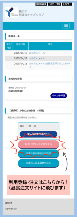下記イメージ画像の「昼食注文サイトで注文する」ボタンより、サイトへ入ることができます。