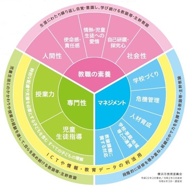この度、「新たな教師の学びの姿」の実現に向け、令和4年8月に国の指針が改正され、また令和5年3月に「第4期横浜市教育振興基本計画」が策定されたことを踏まえ、自律的に学び続ける教職員の育成に向けた目標を共有するため、「横浜市人材育成指標」を改訂しました。
