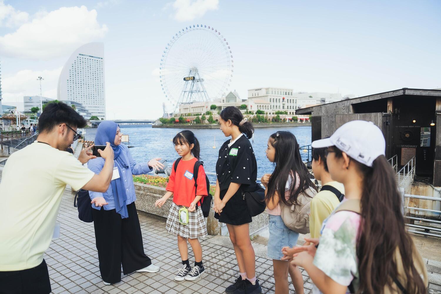 “Yokohama English Quest”は、小学校5年生から中学校3年生を対象とし、多国籍なイングリッシュスピーカーと同じチームになり、国際交流しながら英語でミッションをクリアしたり、横浜の魅力を発信する動画を作成したりするプログラムです。「英語を活用しながら、あらゆる人々の多様性を尊重し、協働、共生できる人」の育成に向けて、初対面となるイングリッシュ・スピーカーと、これまで学んできた英語でコミュニケーションを取ると同時に、自分の住む街の魅力を発信することで、自国を含む多様な文化を受け入れる態度を育んでいます。