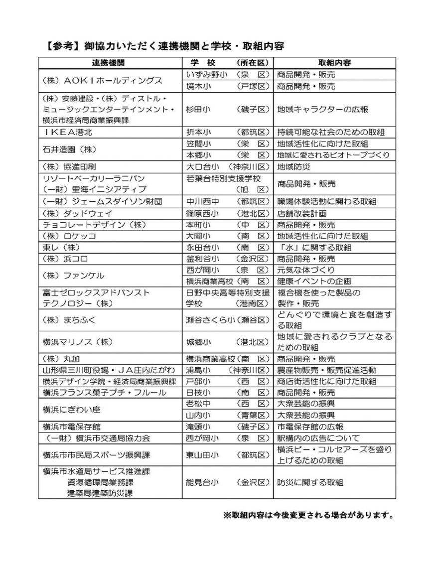 学校名 (所在区) | 連携企業等 | 取組内容 | |