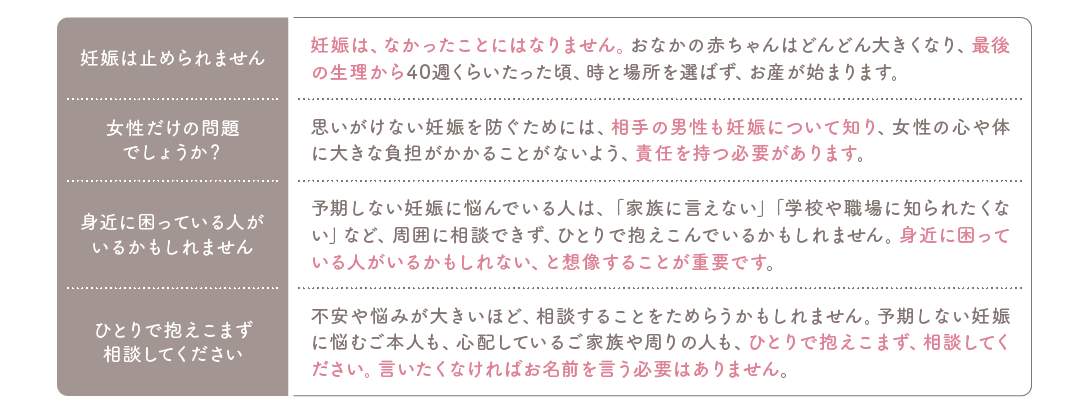 「妊娠、どうしよう」「もしかしたら家族が、知り合いが、妊娠して悩んでいるかも」