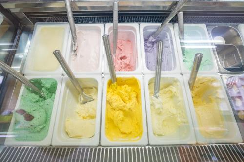 ケースに並ぶ色とりどりのジェラート