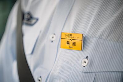 2020年度からはマスタードライバー制度の中でも「シルバー」や「ゴールド」のように、より上位の段階が定められた。秋田さんはマスタードライバーを複数年継続し、ゴールドマスタードライバーに。胸につけた金色のバッジがその証だ。