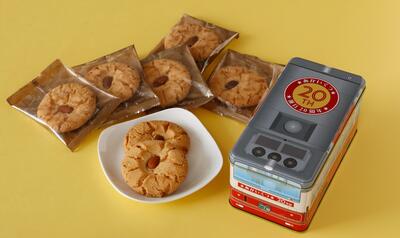 「20周年特別仕様バス缶入り杏仁酥(アーモンドクッキー)7枚入」