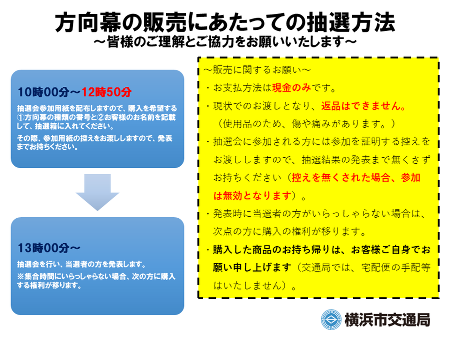 | 方向幕販売抽選会 | 以下の車両に取り付けられていた方向幕を抽選で販売します(出品内容については、当日会場で発表します)。 |