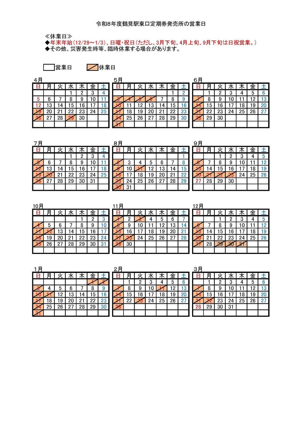 令和8年度 鶴見駅東口バス定期券発売所 営業日