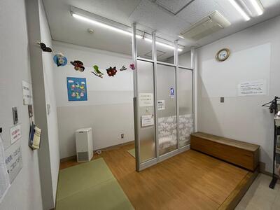 - ベンチ、置き畳、空気清浄機が整備されています。(靴を脱いでご利用ください。)
