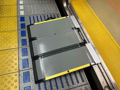 市営地下鉄では、全駅に車両とホームの間に渡すスロープ板(渡り板)を備えております。