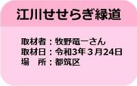 3月24日の昼どき、港北区と都筑区の境界近くにある「江川せせらぎ緑道」にやってきました。