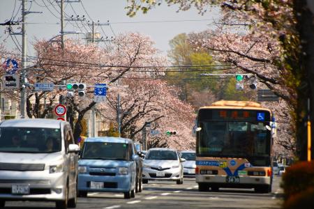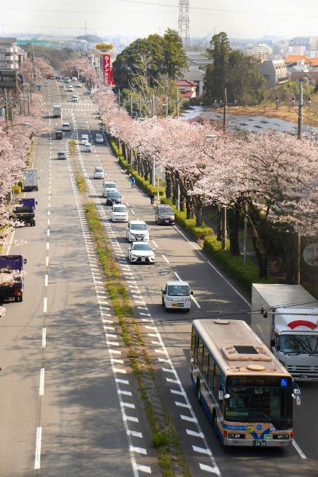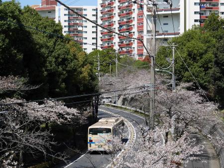 私のお気に入りスポットは、長津田台停留所と北部斎場入口停留所の間の桜並木。アップダウンを伴うのが特徴です。