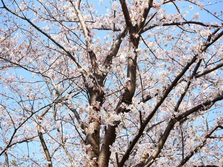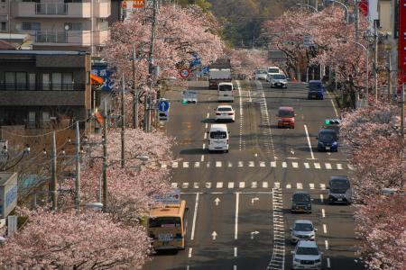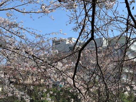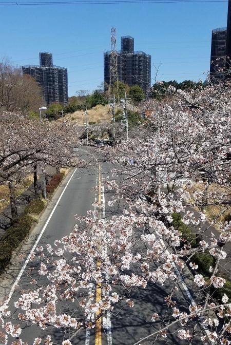 途中で環状4号線をまたぐ橋があり、そちらに寄り道してみると、先ほどまで見上げていた桜たちを一気に俯瞰!