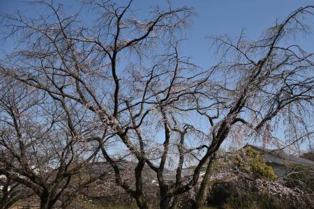 池を左に見て少し進んだところに、シダレザクラがあります。例年、ソメイヨシノより少しだけ早く開花します。