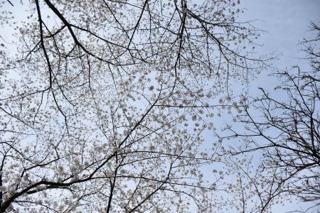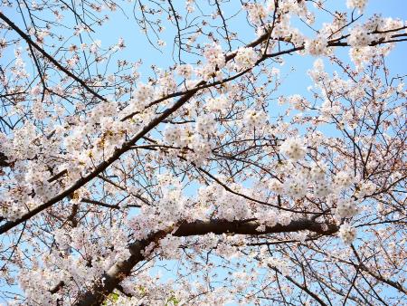 この辺りで上を見上げ、桜の花を陽の光で透かして見るのもおすすめです。そのまま真上を見上げるアングルでカメラを構えると…ちょっと変わった雰囲気の写真になります。