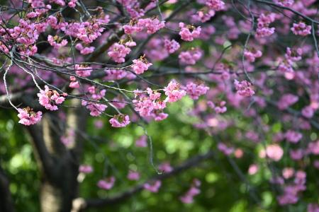 ここに植えられているのが、その名もヨコハマヒザクラ(横浜緋桜)です。花が赤いので「火」を連想しますが、緋色の「緋」です。