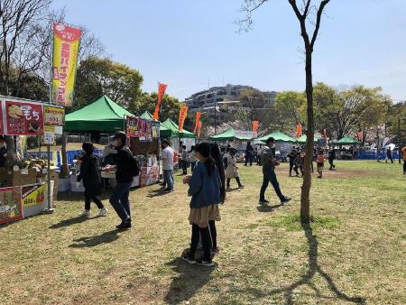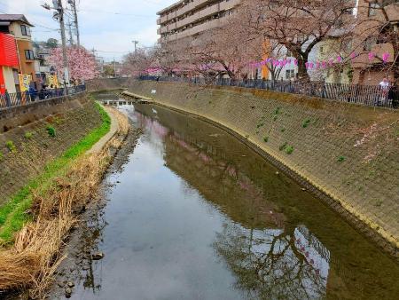 例年、この時期には「南区桜まつり」が開催され、川沿いに出店がたくさん並ぶのですが、今年は新型コロナウイルスの流行により中止となってしまいました。