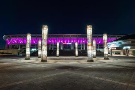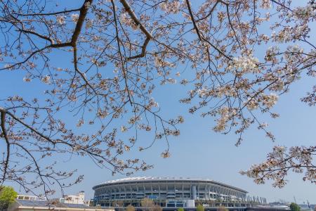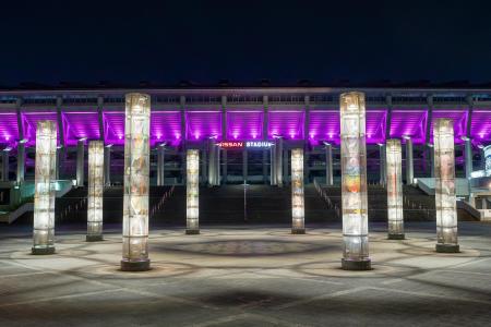 そして、スタジアムは日没とともにライトアップされ、桜色のライトでこんなフォトジェニックな写真も撮れますよ!