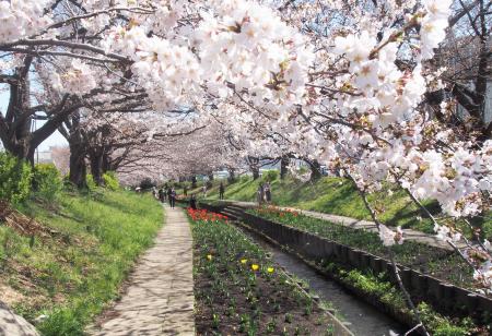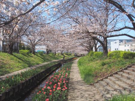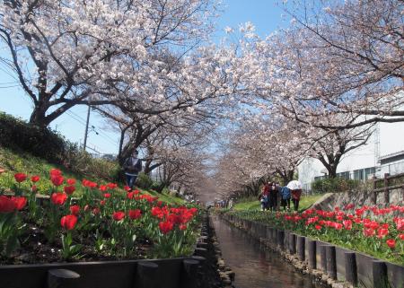 桜並木&チューリップ&清流 華やぎのコラボレーション 〜江川せせらぎ緑道〜(取材者:牧野竜一さん、取材日:3月24日)