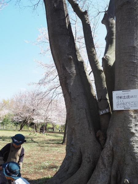 さっそく広場側からぐるりと回って近づいてみると、とても背の低い桜だということがわかりました。