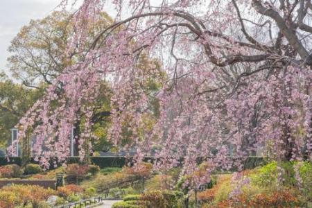 それでは、沈床花壇にあるお目当てのしだれ桜を見に行ってみましょう。