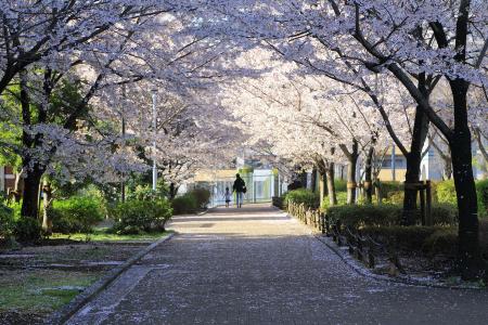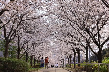 横浜市営バス「若葉台近隣公園前」(市バス40・65系統)で下車して、桜のトンネルが続くゆるやかな坂道をのぼる。途中、歩道橋の上から桜並木を見下ろすことができて、満開になったら「桜雲海」を見ることができるかもしれないと、ちょっとわくわくする。