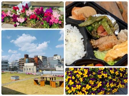 旭区役所前にある「PePe」というお店では、平日のお昼だけお弁当を販売している。桜の時期は、バス通り側のテラス席が利用できるそう。明るくておしゃれで優しいおかあさんが、「いつもありがとね。階段気をつけてね」と声をかけてくれる。うんうん、おかあさんもね。