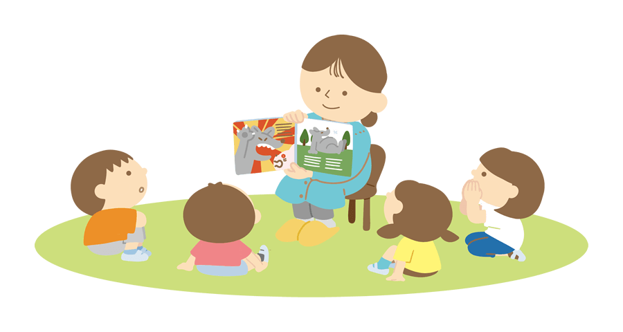 芝生の上で親子でくつろぎながら、平和にちなんだ絵本の読み聞かせなどを行います。