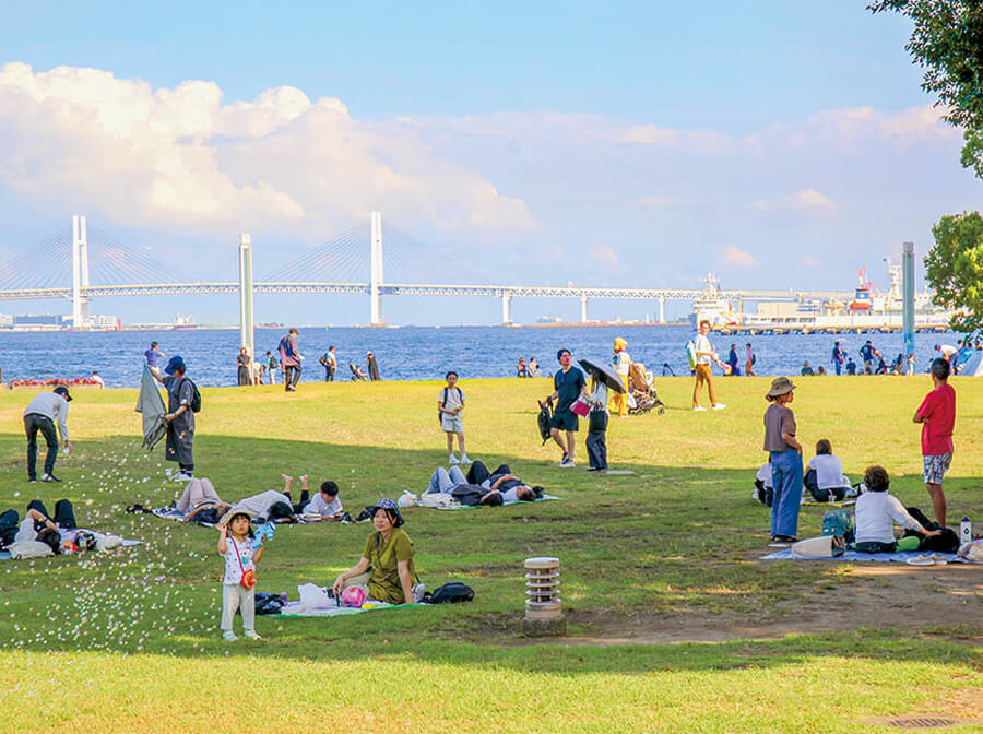青い海と緑の芝生のコントラストが鮮やかな、みなとみらい随一の開放的な空間です。年間を通じて、親子で楽しめ、さまざまな発見が得られるイベントが盛りだくさん。